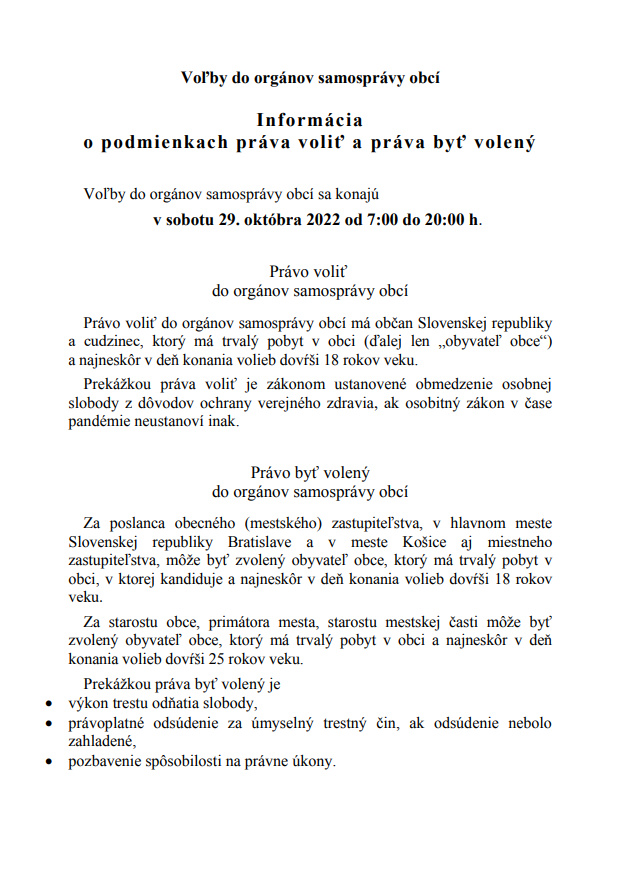 Informácie o podmienkach práva voliť a práva byť volený OSO