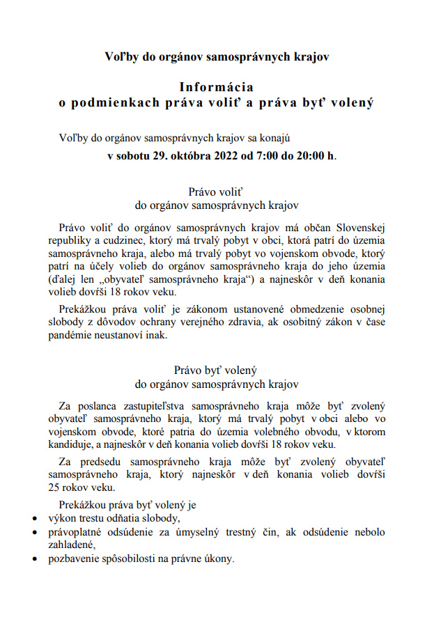 Informácie o podmienkach práva voliť a práva byť volený KSK