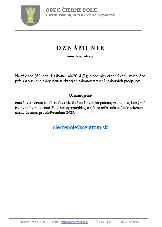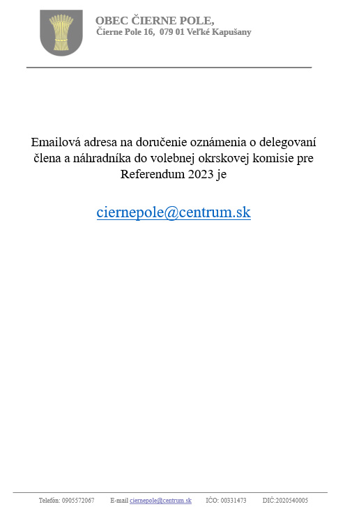 Volebná miestnosť: Sála kultúrneho domu Čierne Pole, Čierne Pole 16, 079 01 Veľké Kapušany
